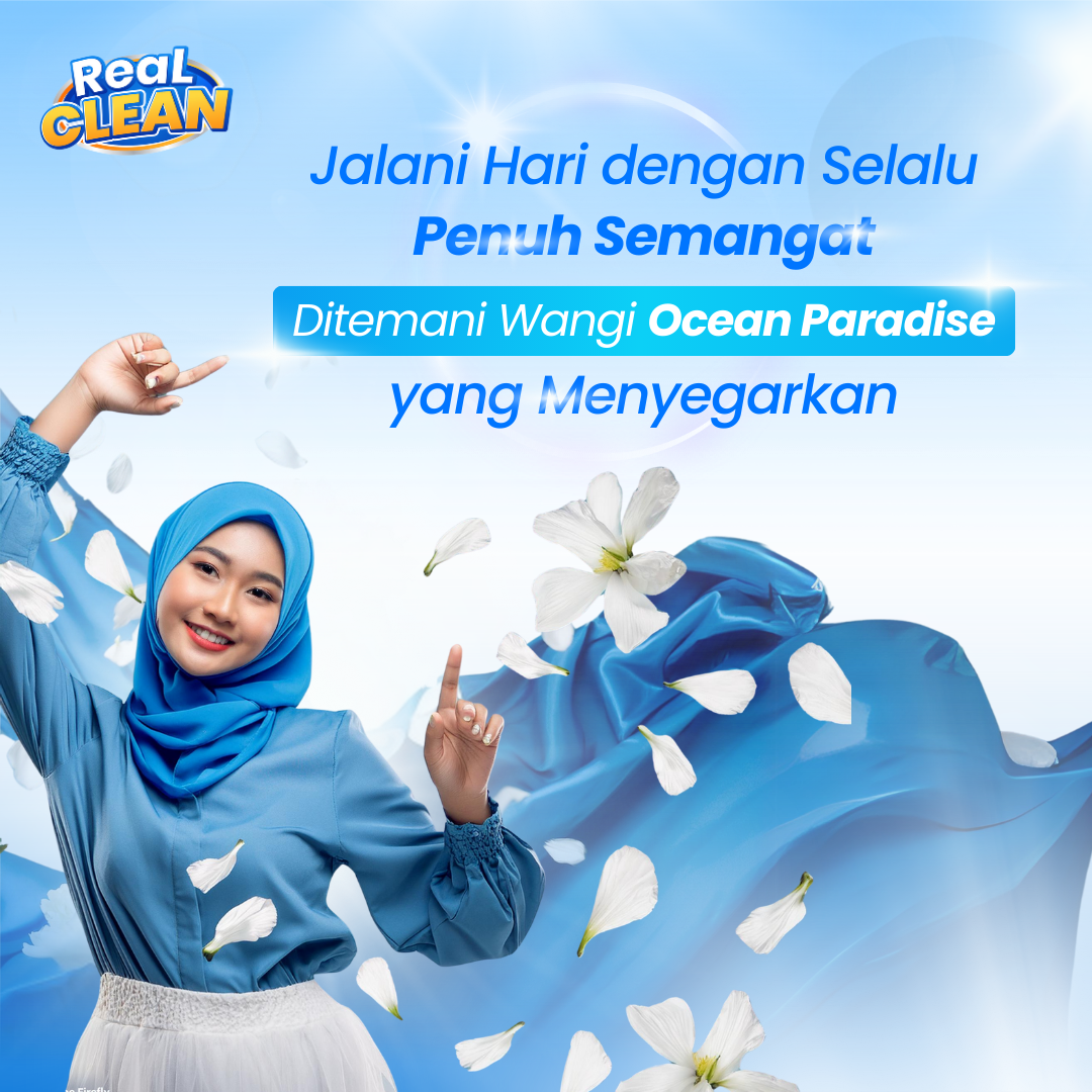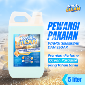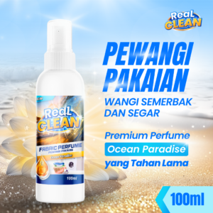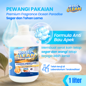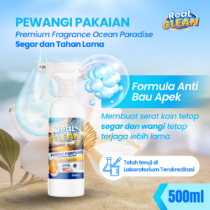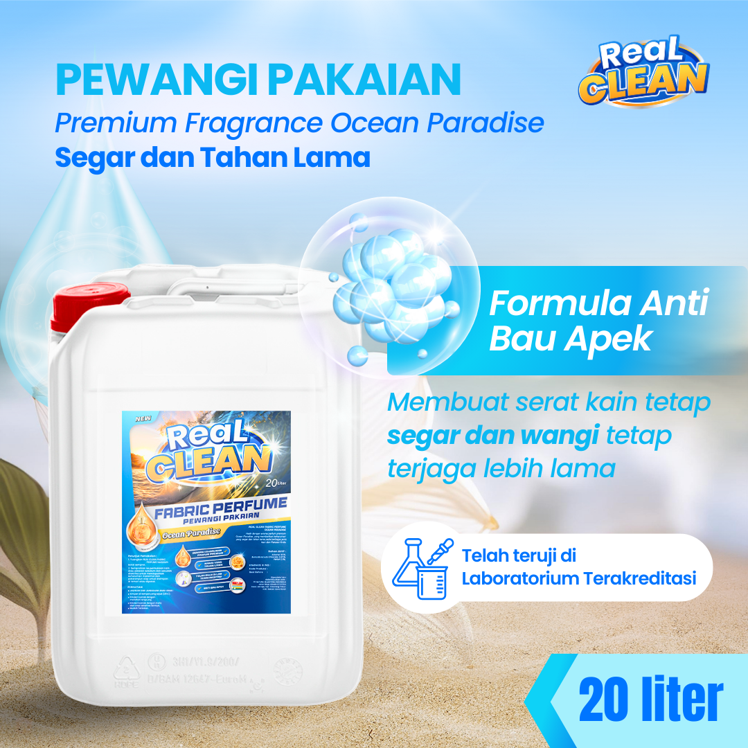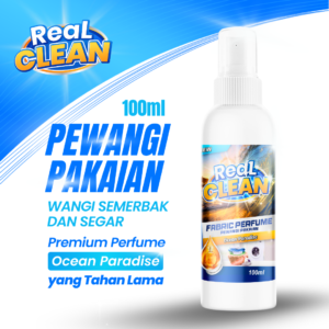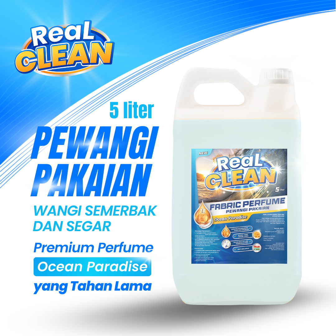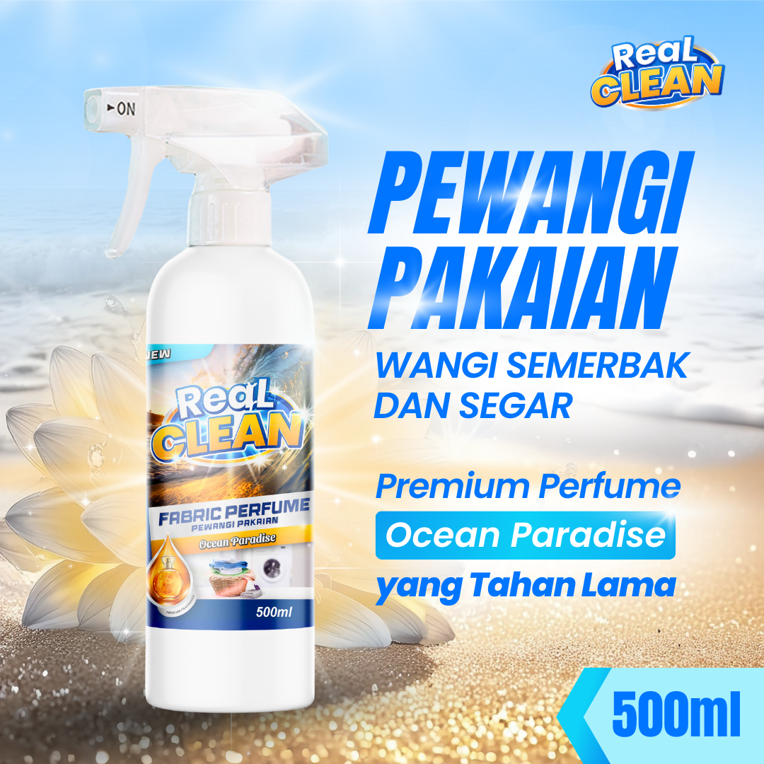 New Real Clean Fabric Perfume hadir dengan wangi premium yang mewah dan awet tahan lama, dilengkapi dengan kandungan antibacterial yang mampu membunuh 99.99 % kuman dan bakteri pada berbagai jenis kain dan pakaian dengan keharuman yang segar Hello Sunshine manis dan tahan lama.