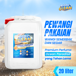 - Tuangan Real Clean Fabric Perfume ke dalam botol semprot