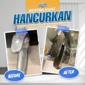 - Kerak air pada kran, wastafel dan sink musnah